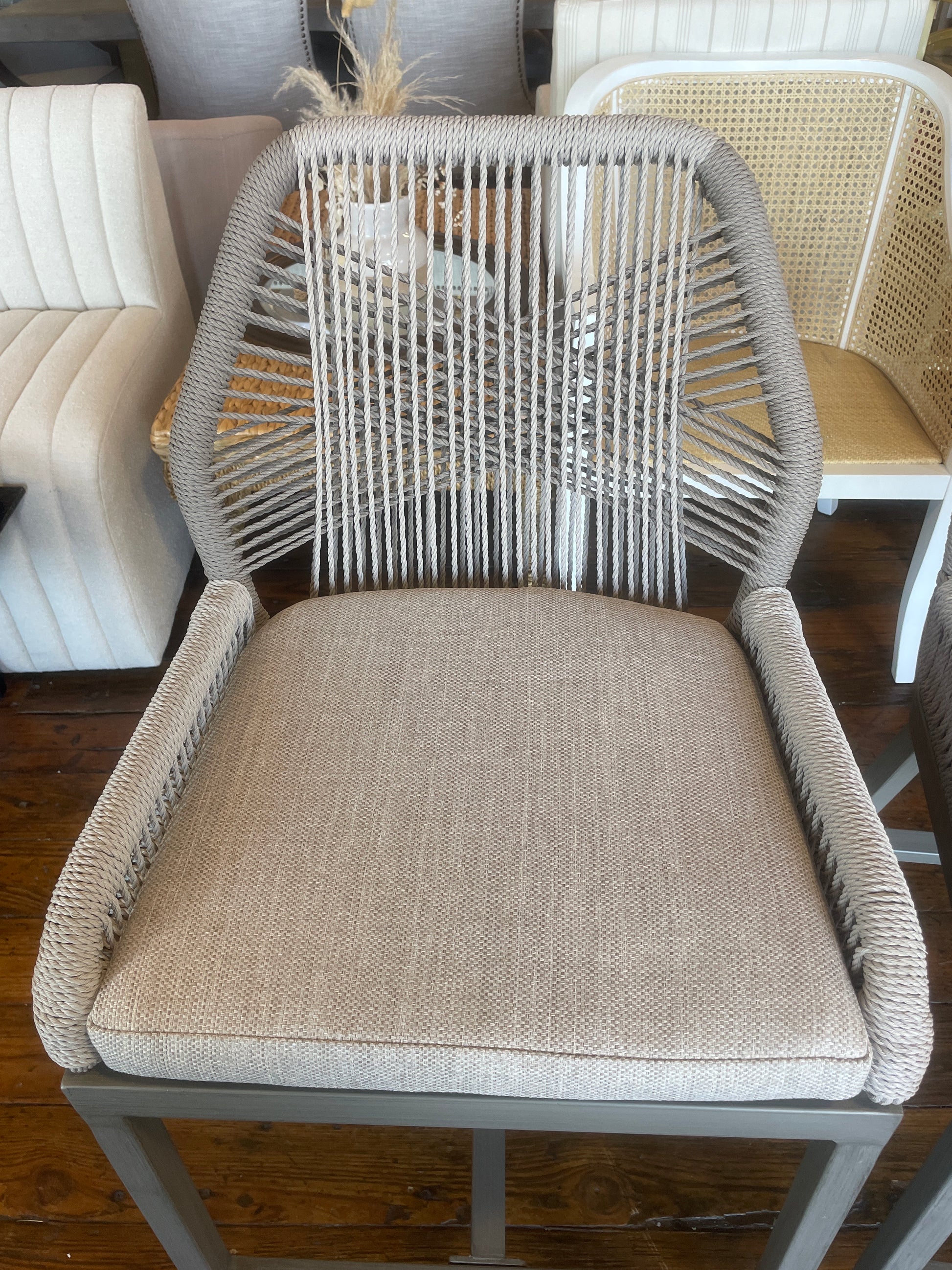 2 woven indoor / outdoor grey counterheight barstools 🩶
