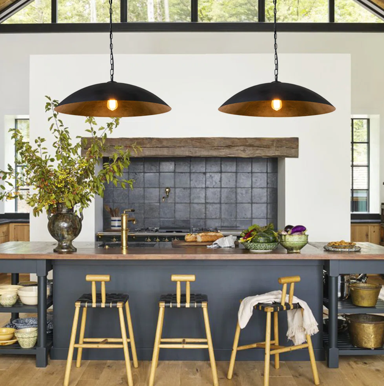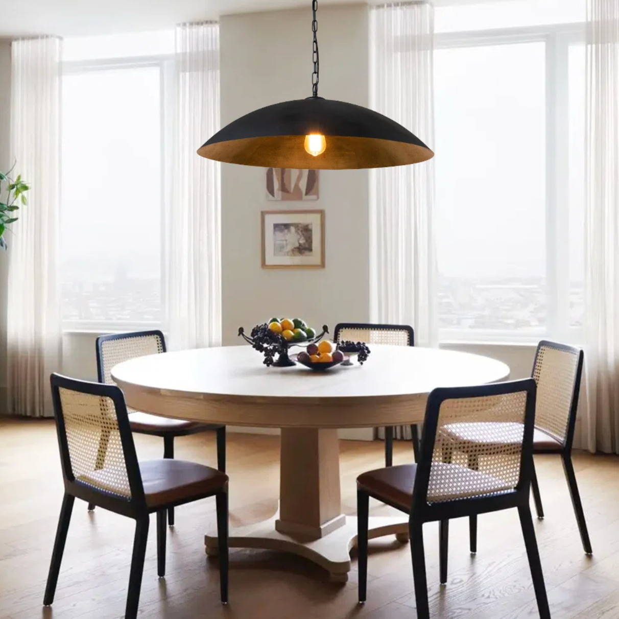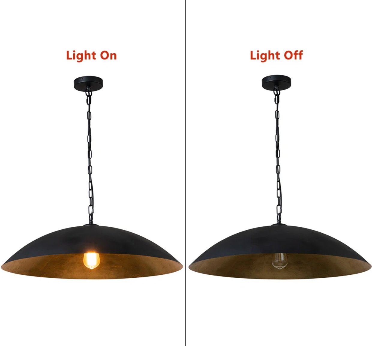 This 1-light metal dome pendant is equally appealing whether lit or unlit, thanks to its meticulous design. Made from premium materials, it is built to withstand the elements and features a gold leaf interior. Its minimalist dome shade adds sleek sophistication to any space. Use one light on its own or group several together to create a defined dining area in an open-plan setting.