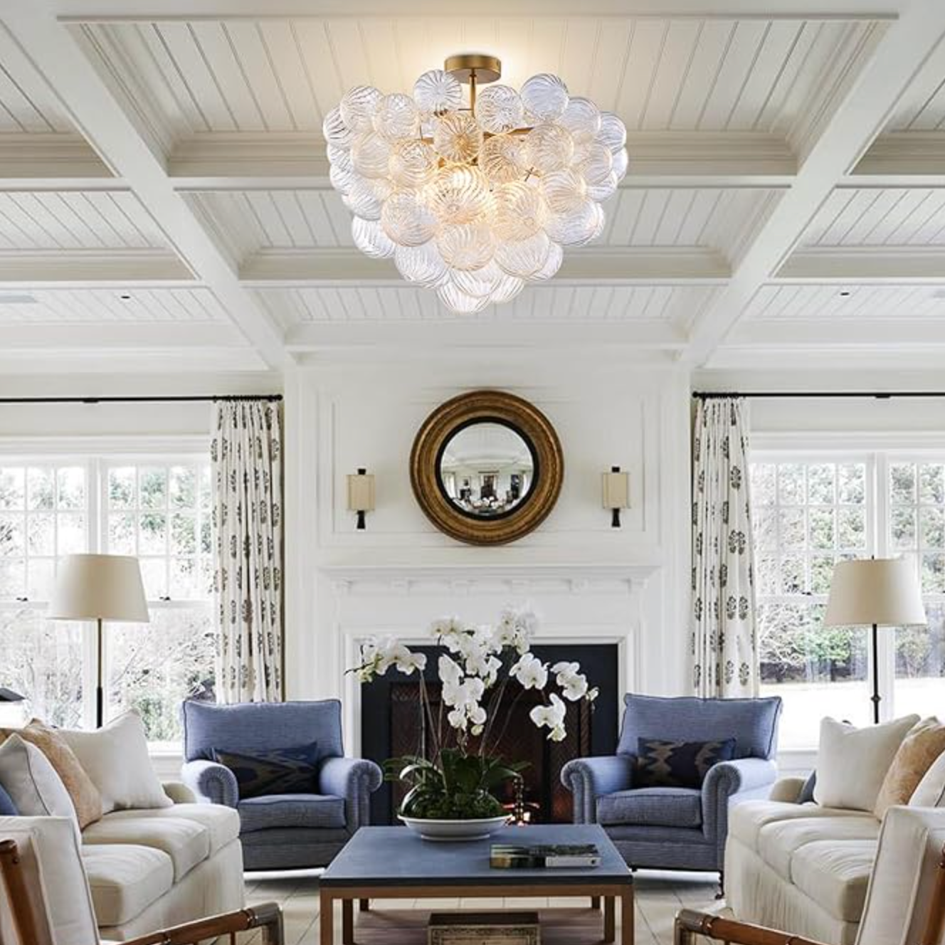 Bubble ball semi-flush mount 20" chandelier (gold w/ clear ribbed glass) 🫧