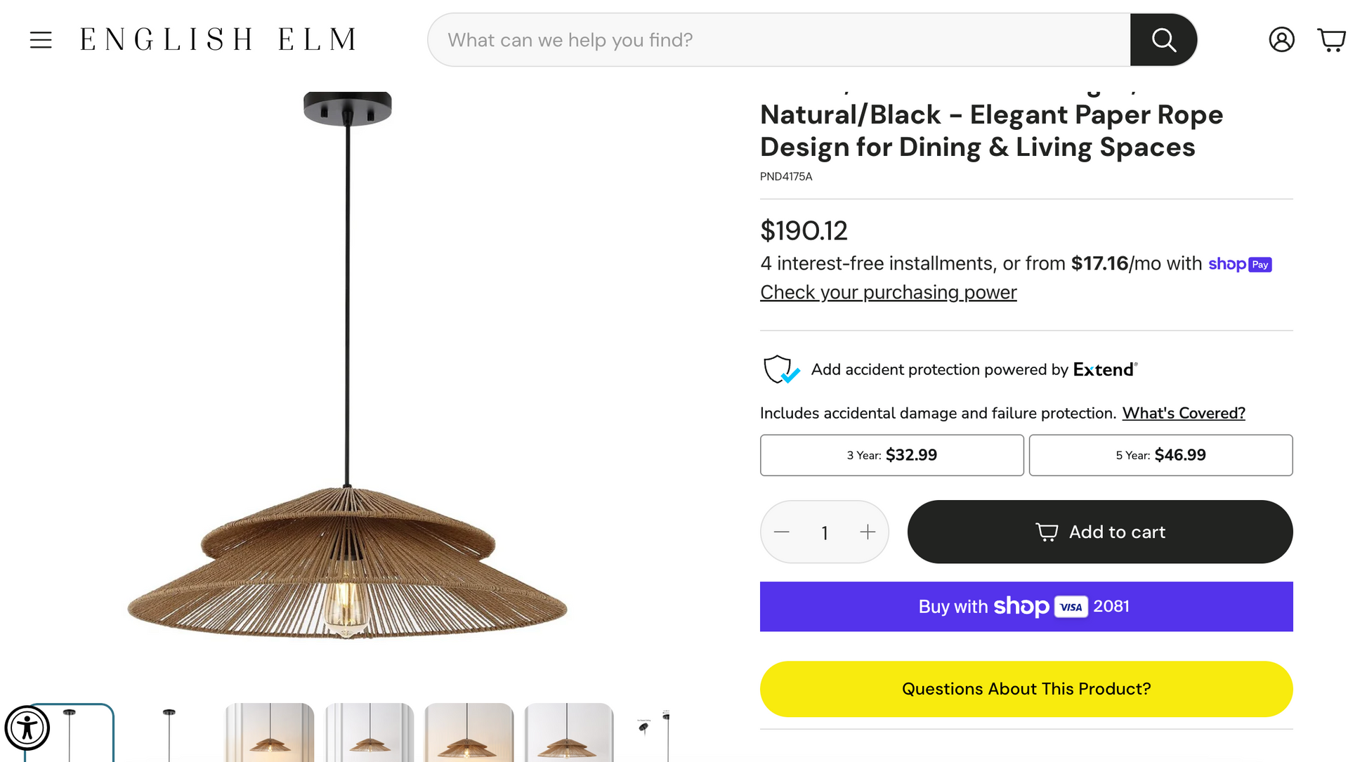 Elegant paper rope 23” pendant light in Natural/Black 🖤