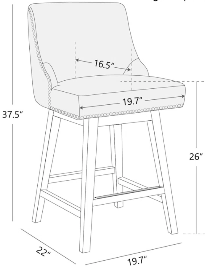 This grey upholstered swivel counter height stool is a true eye-catcher. With its sleek metal frame, it's built to last and effortlessly brings a modern touch to any space. The grey upholstery adds a soft, inviting layer to the hard metal, creating a beautiful contrast that's both visually appealing and comfortable. Thanks to its swivel feature, you can turn in any direction with ease. Perfect for a kitchen island or home bar, it's a chic yet functional addition to your home. And did I mention it's counter height? Ideal for casual conversations over morning coffee or late-night snacks.