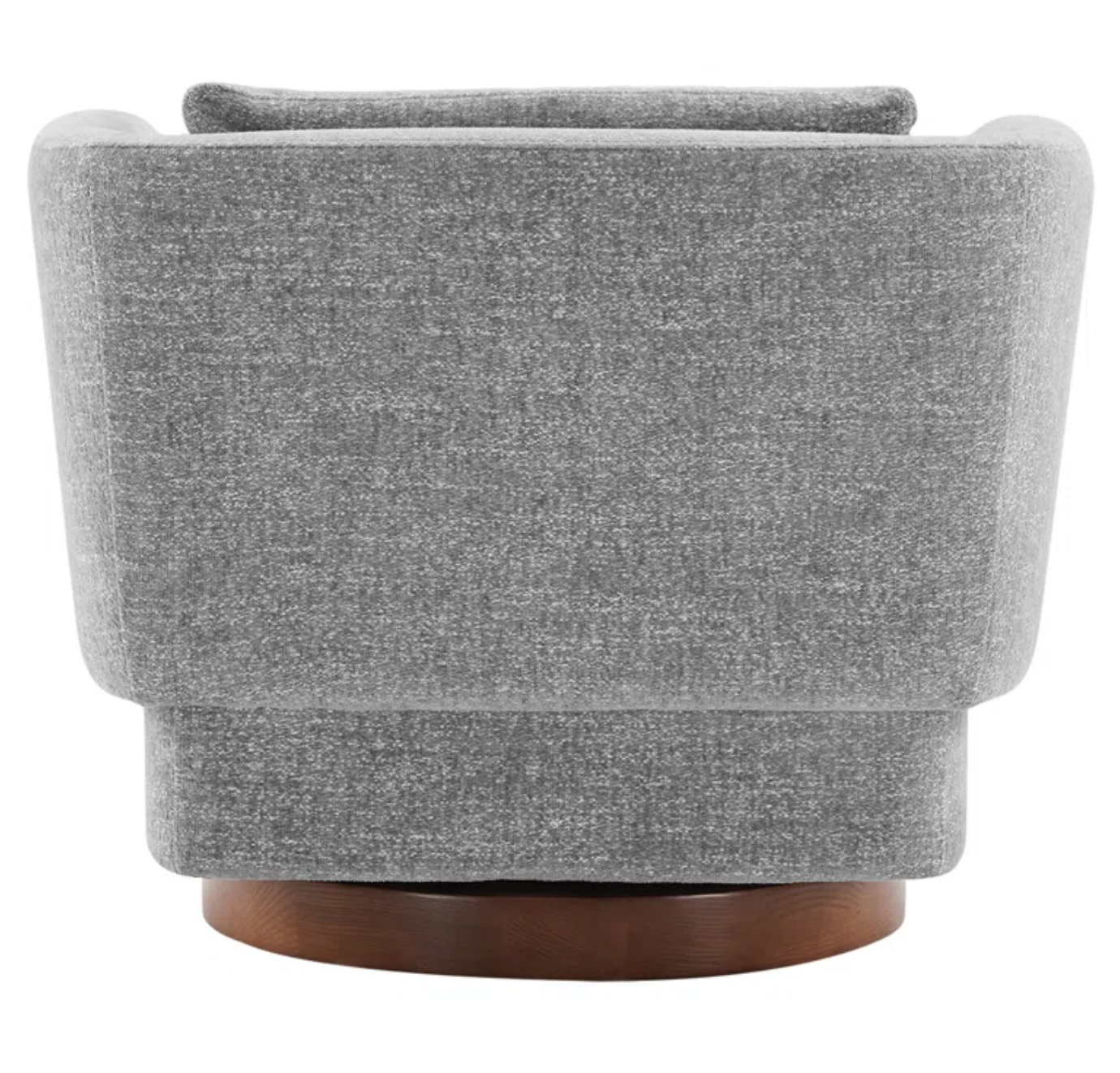 Meet your new favorite spot to unwind, our super soft grey tweed swivel armchair. This piece is a generous 35'' wide, giving you plenty of room to get comfortable. Expertly crafted with a sturdy build, it swivels to fit your lounging needs perfectly. The soft tweed material gives it a cozy yet refined feel, while the chic grey shade ensures it blends seamlessly with your existing decor. Ideal for your reading nook or living room, it's the perfect blend of style, comfort, and functionality. This armchair doesn't just look good, it feels good too.