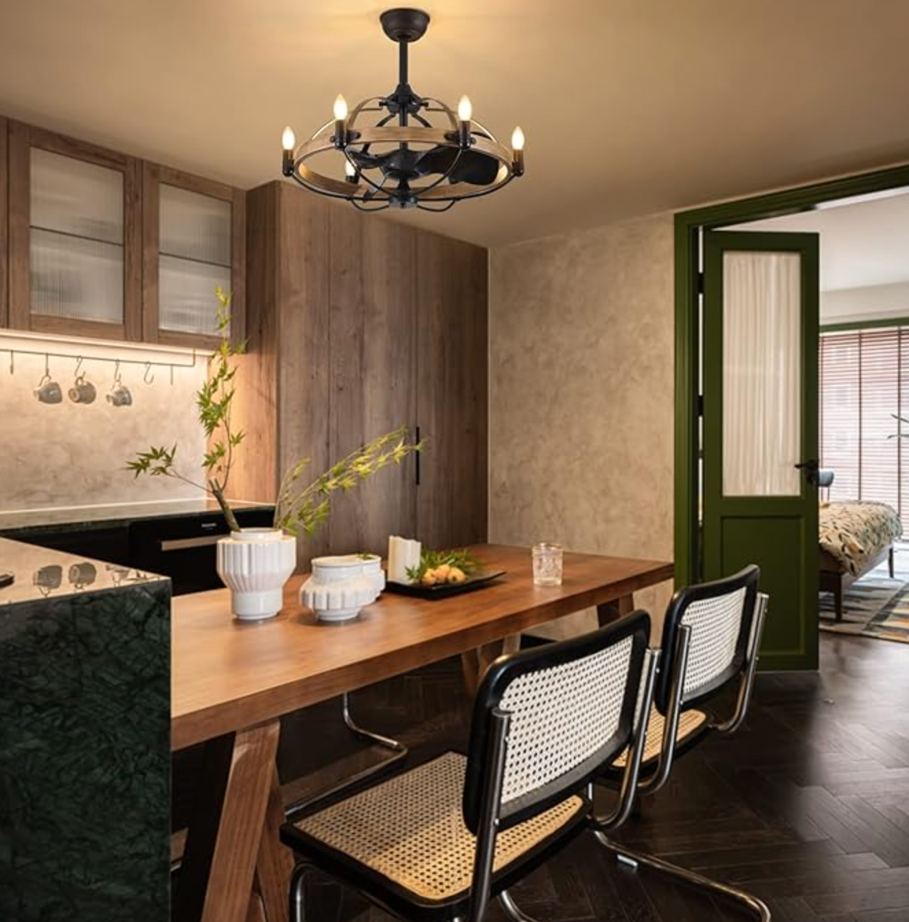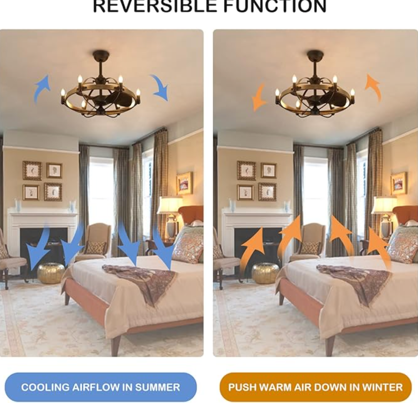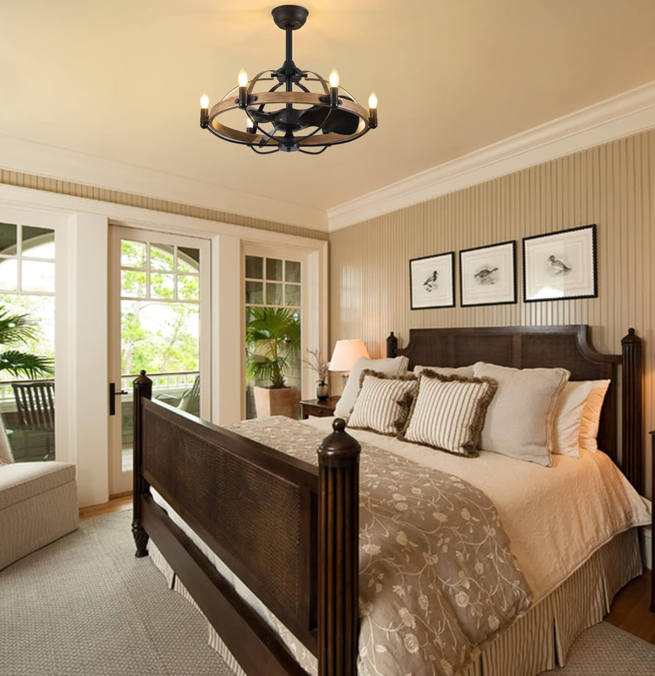 Vintage rustic farmhouse 27" ceiling fan chandelier 🐿